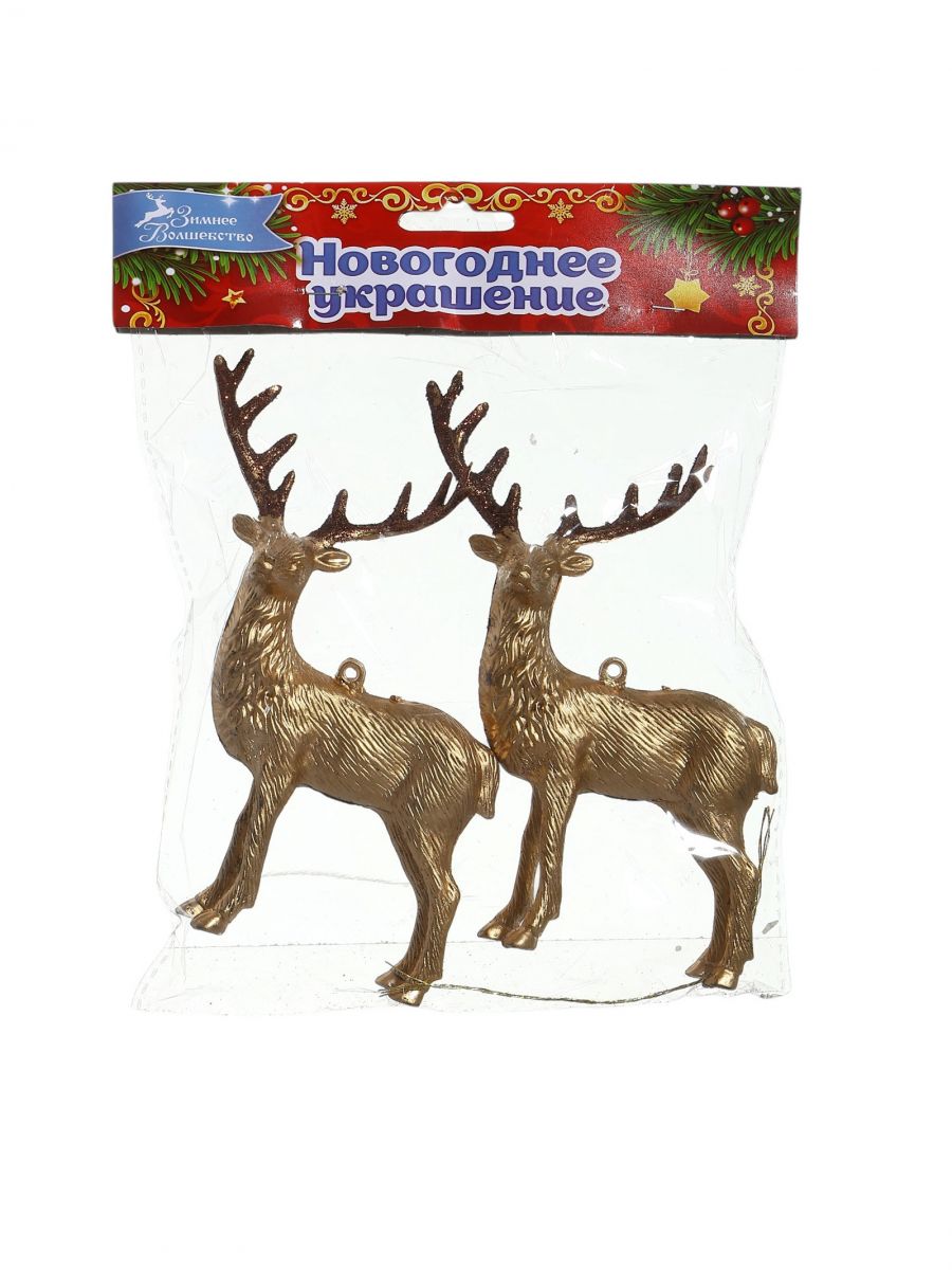 Ёлочные игрушки 2 шт. «Благородный олень» пластик, 8*15 см, золото