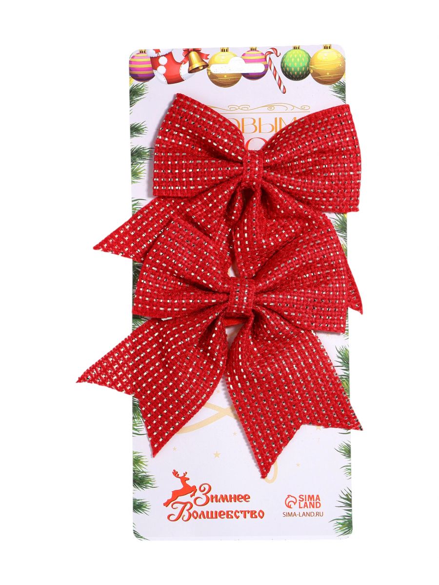 Ёлочные игрушки 2 шт. «Зимнее волшебство. Бантик плетёный» пластик, 15*12 см, красный