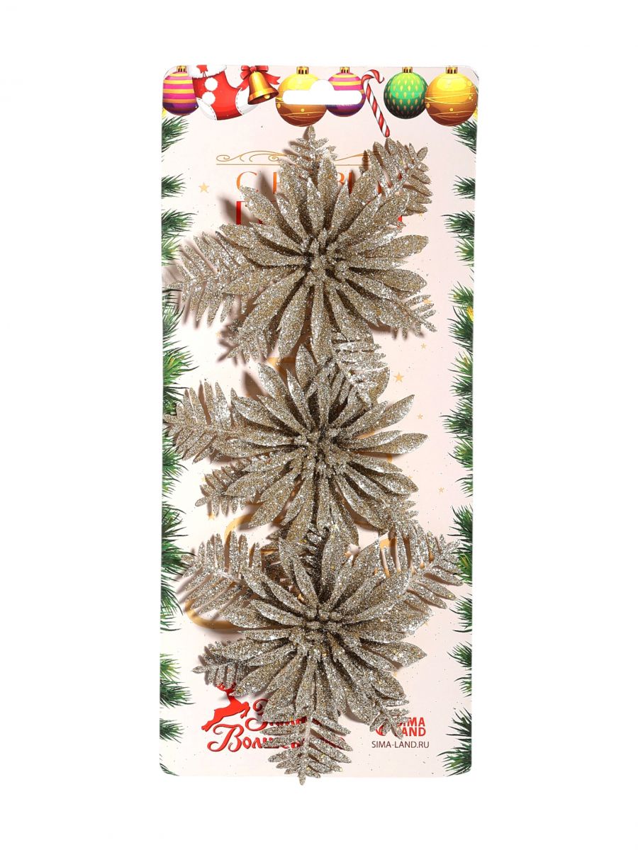 Ёлочные игрушки 3 шт. Цветы с узкими лепестками» пластик, 10*10 см, золото