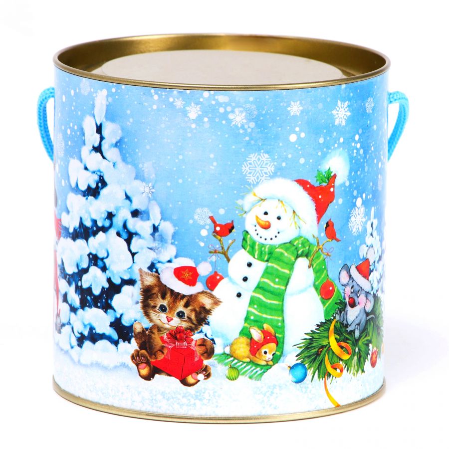 Подарочная новогодняя коробка - тубус «Игра в снежки» 120*120 мм