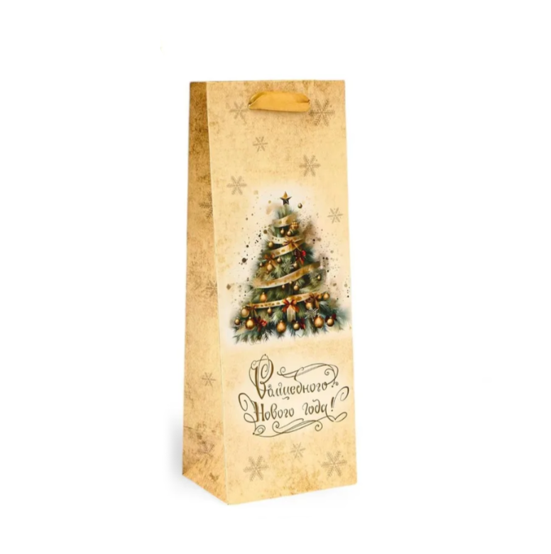Пакет подарочный новогодний п/бутылку «Роскошная ёлка», 13*36*1