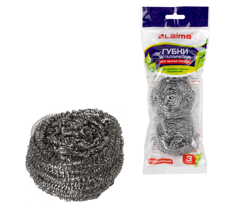 Губки (мочалки) металлические спиральные 3х20г КОМПЛЕКТ 3шт, для посуды, гриля, плиты, LAIMA