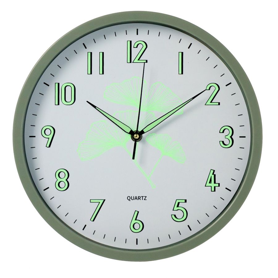 Часы настенные круг д30см плавный ход,корпус оливковый Светящиеся
