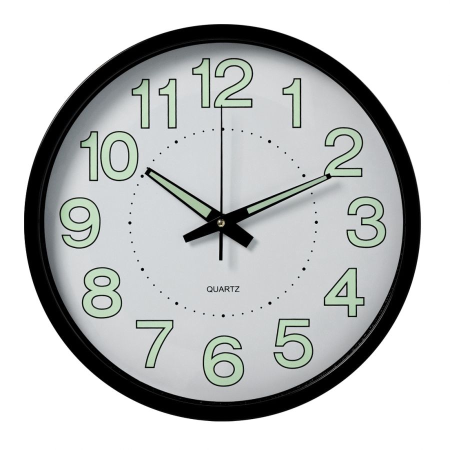 Часы настенные круг д30см плавный ход,корпус черный Светящиеся