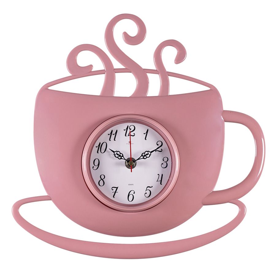 Часы настенные круг д31,5*30,5см плавный ход,Чашка с дымком,розовый Классика