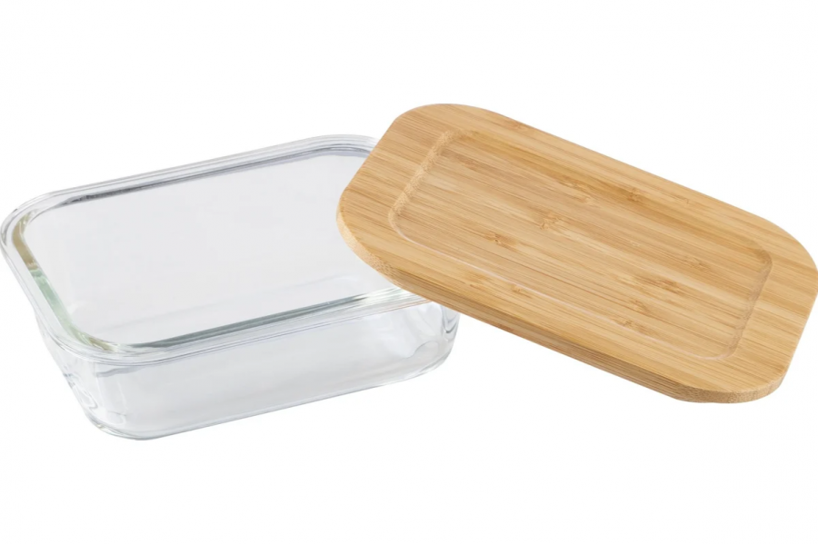 Контейнер из жаропрочного стекла 0,5л прямоуг. с крышкой из бамбука Leonord BAMBU