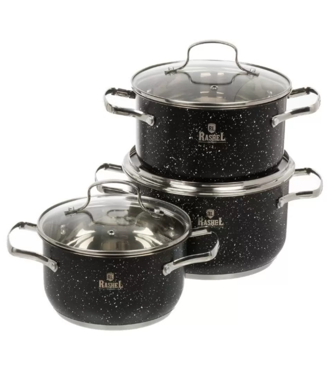 Набор кастрюль нерж. 6пр (2,6л; 3,6л; 4,7л),черный гранит, Rashel
